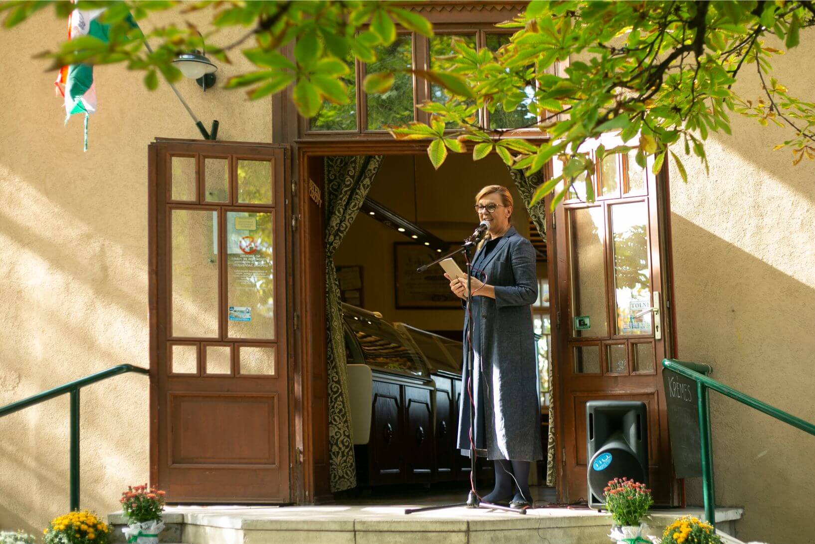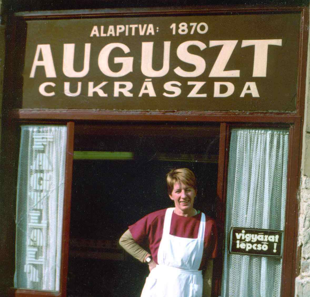 Olga a Fény utcai üzlet előtt